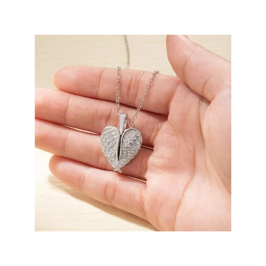 The locket gently opens on both sides like angel wings, symbolising protection, freedom, and eternal love.