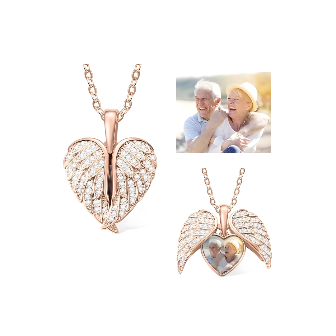 Turn your favorite picture into a forever keepsake. Simply upload a photo of someone special, and we will place it inside this stunning wing pendant. Whether it is a partner, a child, or a cherished memory, this necklace ensures they are never too far away.