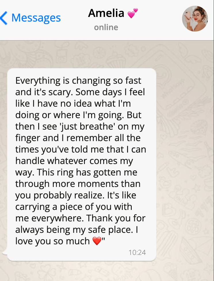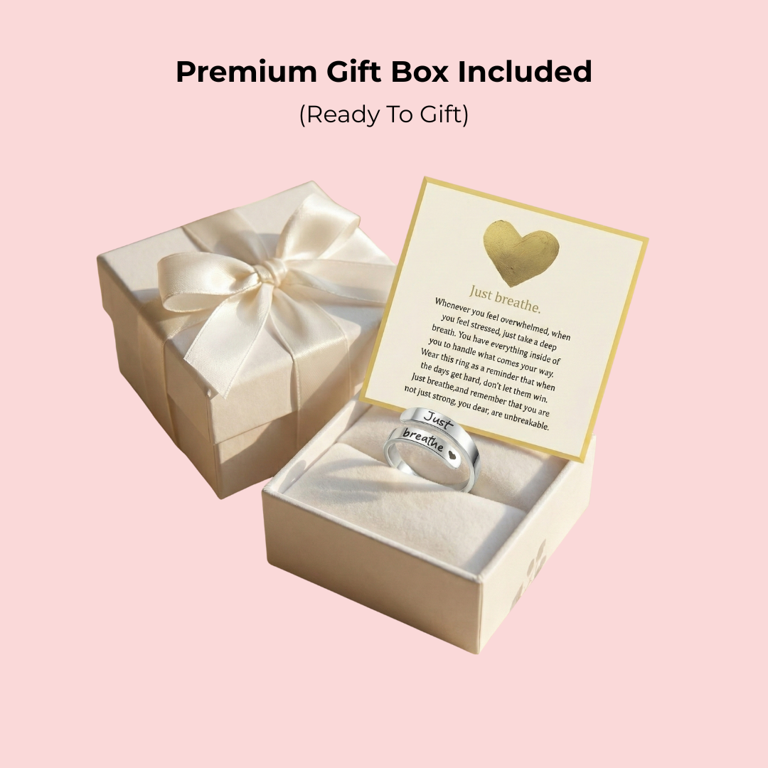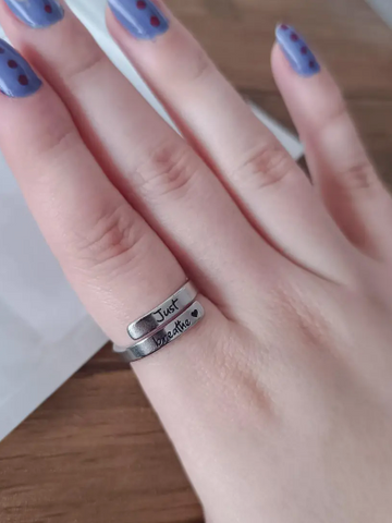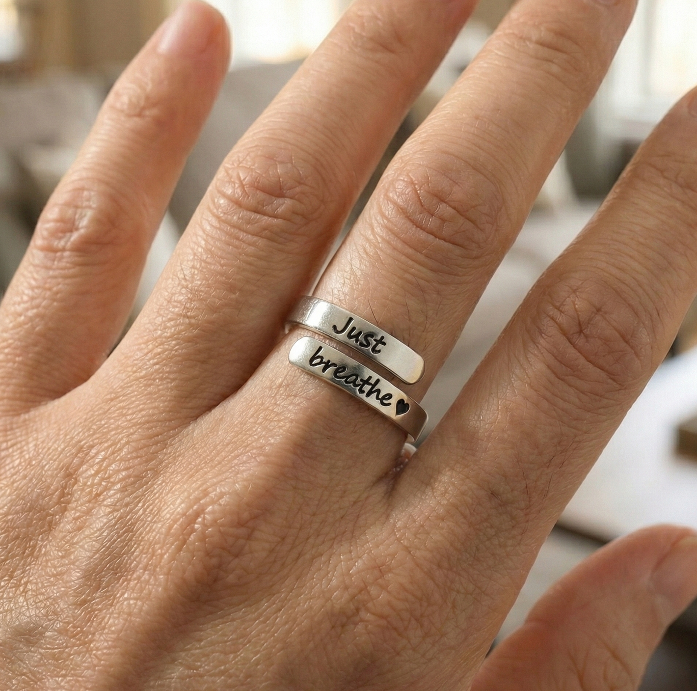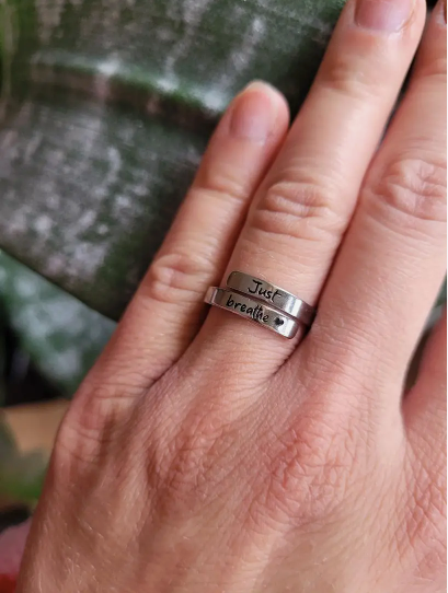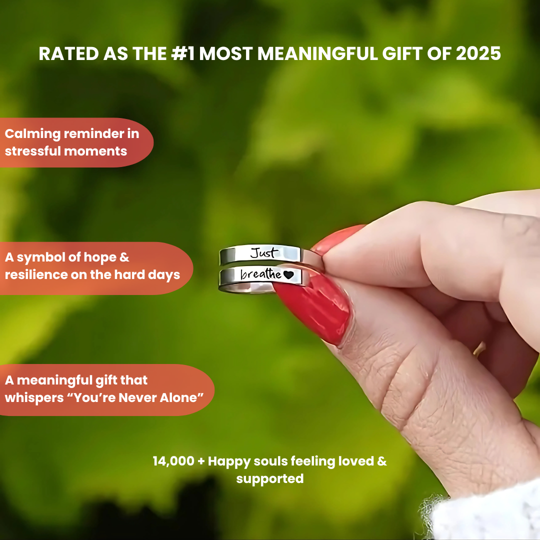 This isn't just a ring — it's a way to be there when you physically can't be. The words "Just Breathe" are a simple but powerful reminder that they are never alone, even on the hardest days.