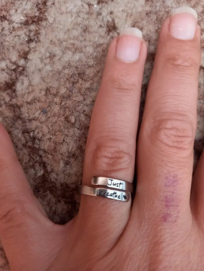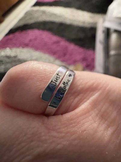 When ever I feel low I look at this ring, it helps to calm me down and “just breathe” it’s a nice fidget ring too. I highly recommend this I’d you need a visual reminder to stay calm and just breathe.