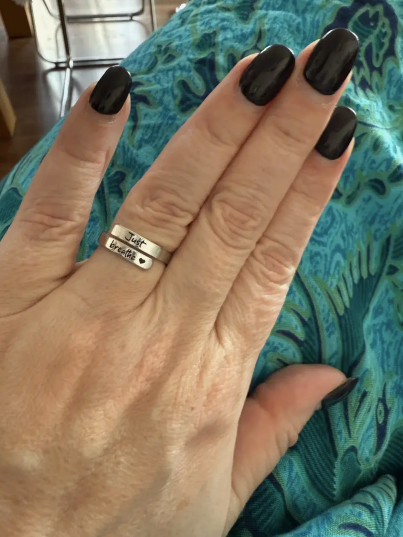 I love this ring. I have a similar one that says I am enough. I wear them everyday as a reminder that I am enough and that all I need to do is breathe. I love this ring, I love the message and sometimes we all need a reminder.